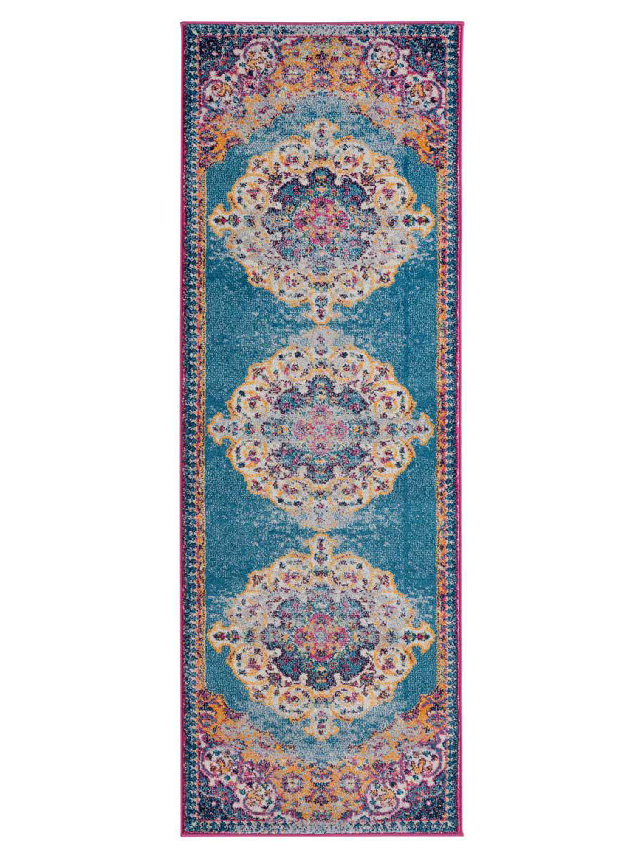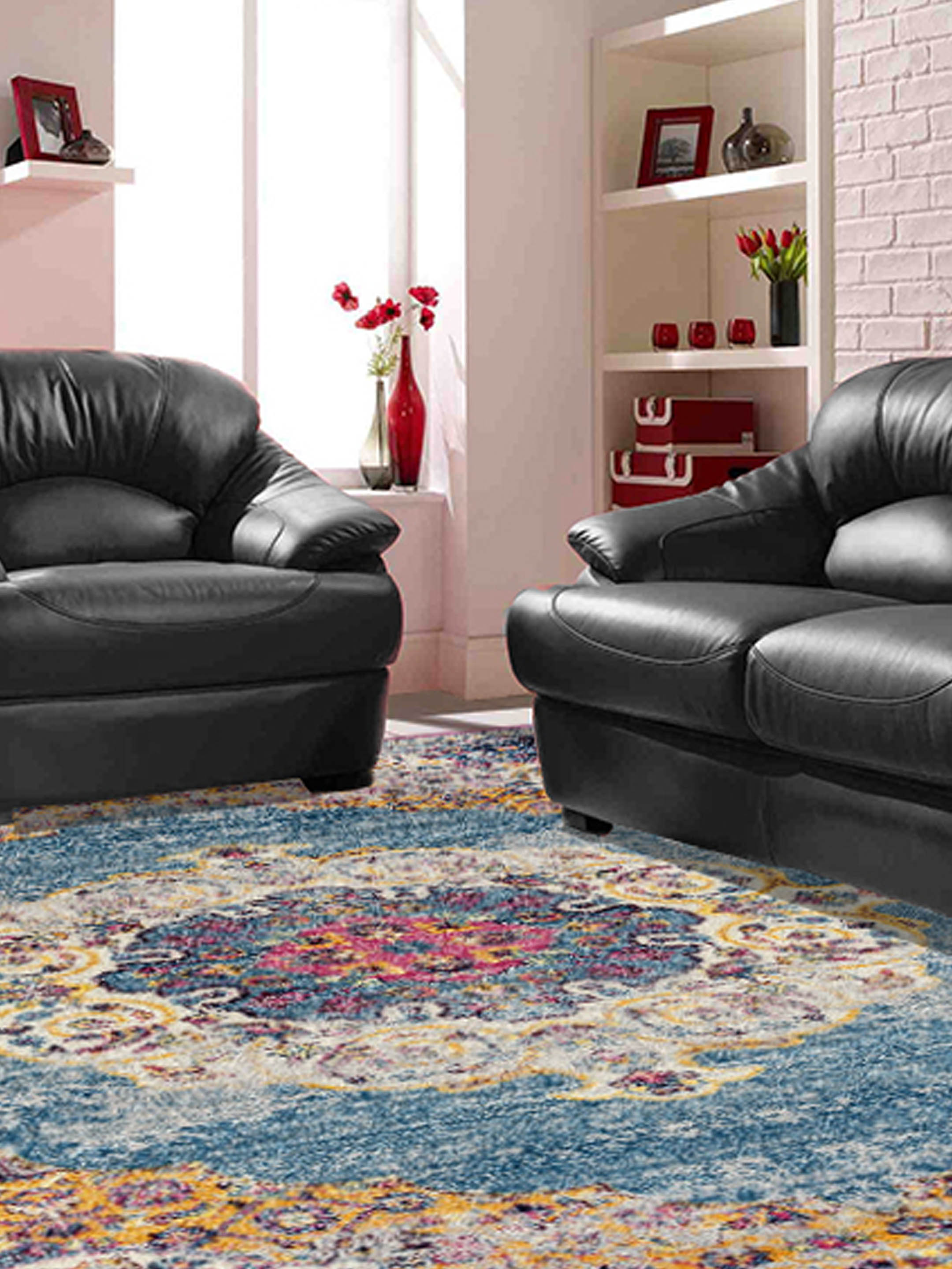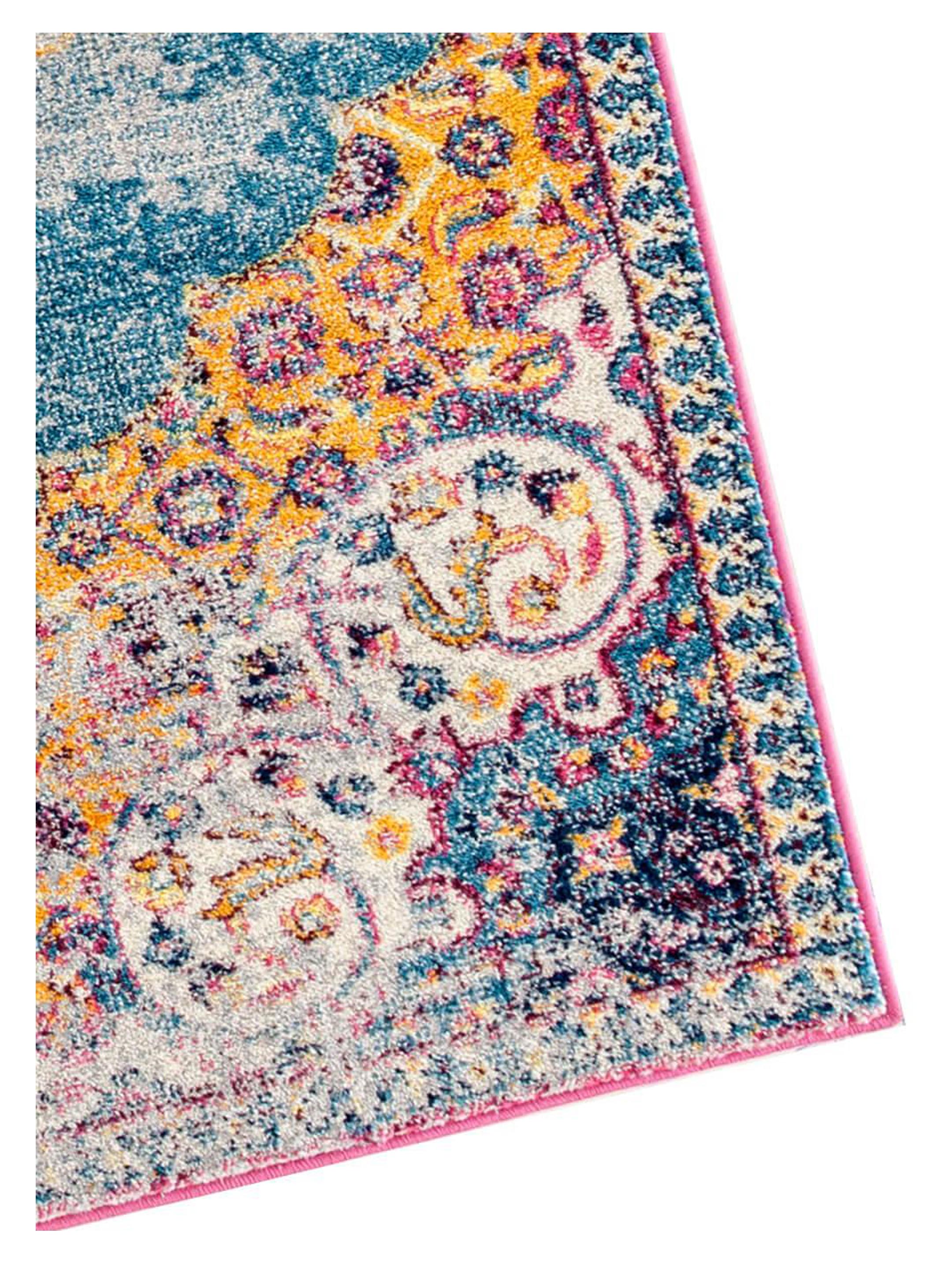 Bright, colorful, and exciting inspired by urban food and spice markets Geranium will add a symphony of brilliant color to any room. Machine woven in Turkey of durable and stain resistant Polyester.